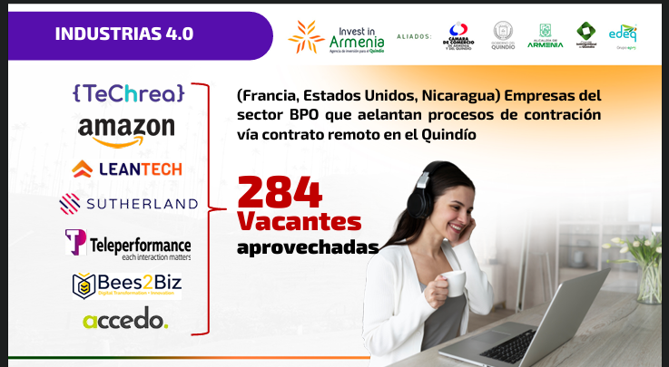 - La Agencia de Promoción de Inversión – Invest in Armenia, es resultado de una alianza entre la Gobernación del Quindío, la Alcaldía de Armenia, la Cámara de Comercio de Armenia y del Quindío, EDEQ Grupo EPM, y el Comité Intergremial, que busca generar oportunidades de empleo a través de la atracción de inversión.