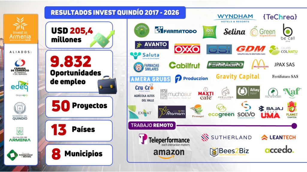 Estas acciones han permitido que más de 2.000 inversionistas conozcan el potencial del Quindío y que el departamento haga parte activa del portafolio de promoción de inversión de Colombia.